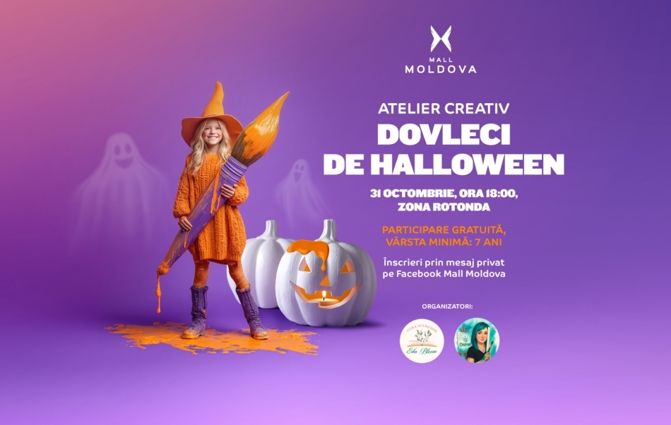 De Halloween, Mall Moldova se transformă într-un spațiu magic dedicat creativității copiilor! Pe data de 31 octombrie 2025, începând cu ora 18:00, micuții artiști sunt invitați să participe la un atelier special de pictare a dovlecilor din ipsos, organizat în parteneriat cu Edubloom Club & Afterschool și OHANA - Ateliere creative.